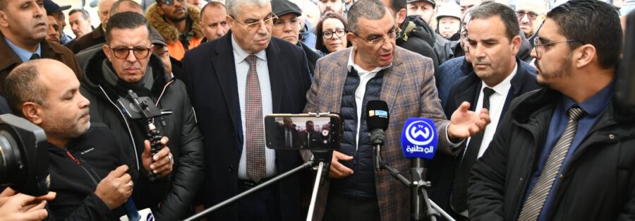 يجري صباح اليوم الخميس 22 جانفي 2026 السيد عبد القادر جلاوي وزير الأشغال العمومية و المنشآت القاعدية زيارة عمل لولاية قالمة قصد معاينة أشغال مشروع ازدواجية و عصرنة الخط المنجمي الشرقي عنابة بوشقوف بلاد الحدبة، في شطره المار بإقليم ولاية قالمة، بمعية السيد والي الولاية سمير شيباني و السيد رئيس المجلس الشعبي الولائي، و بحضور السلطات الأمنية و العسكرية، المنتخبين بالمجالس الوطنية، الأسرة الثورية، رئيس دائرة بوشقوف، المدراء التنفيذيين، المندوب المحلي لوسيط الجمهورية، رؤساء المجالس الشعبية البلدية لبلديات دائرة بوشقوف و أسرة الإعلام.