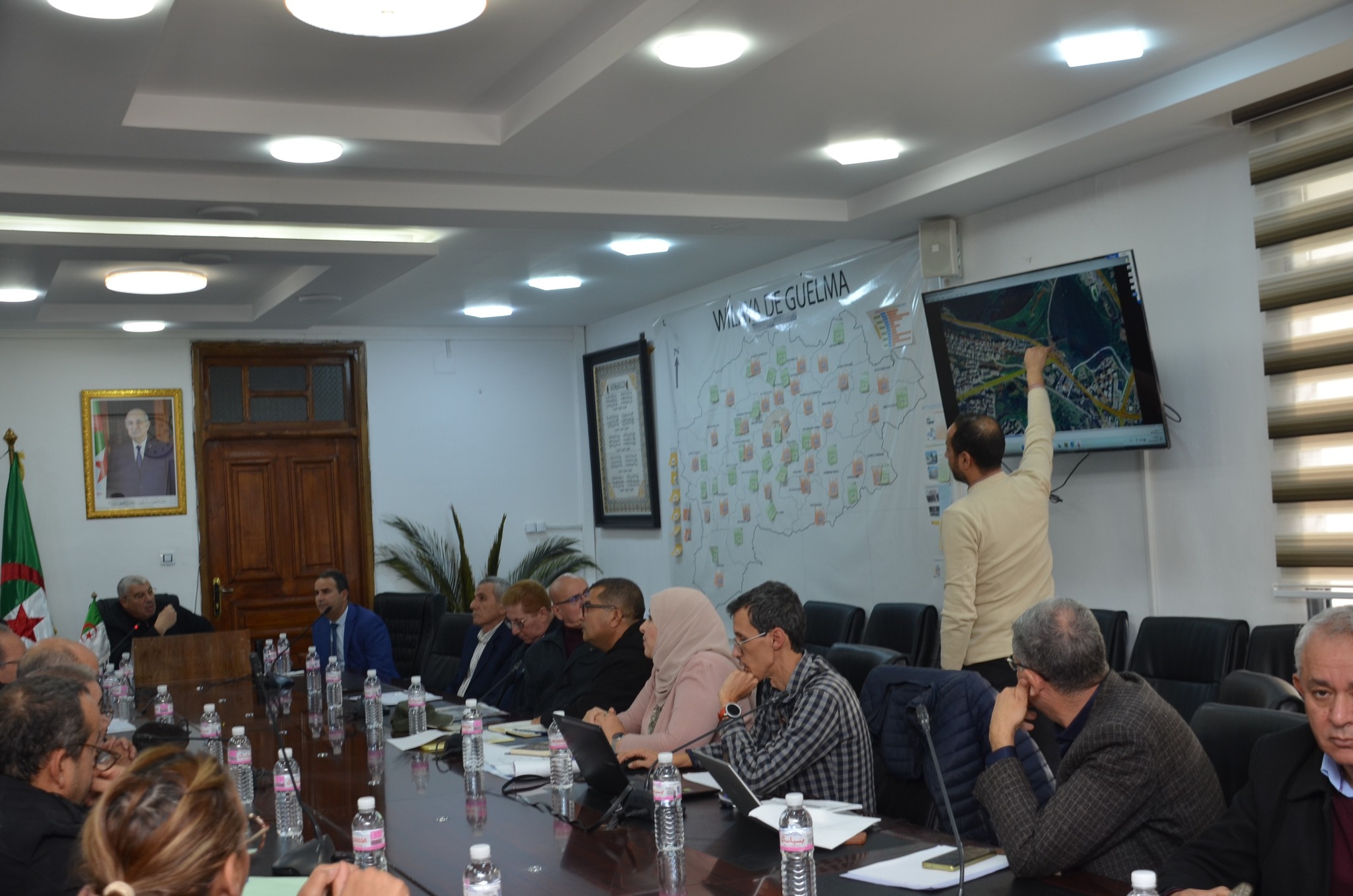 جلسة عمل خصصت لمناقشة * الأرضية المخصصة لبناء مقر الخزينة الولائية *أشغال التهيئة الخارجية لمطعم المركزي بالمجمع البيداغوجي 6000 مقعد