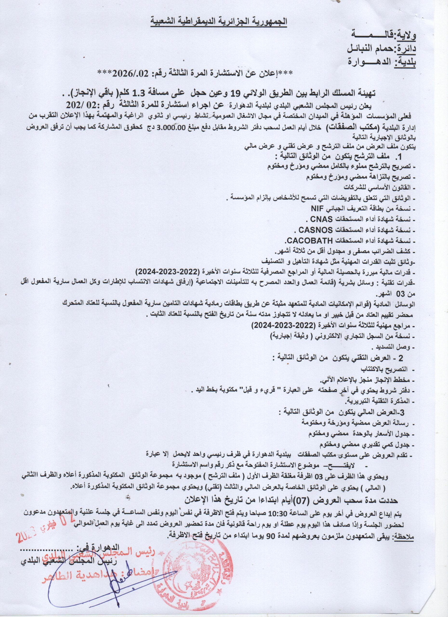 • اعلان عن إجراء استشارة رقم 02 للمرة الثالثة / 2026