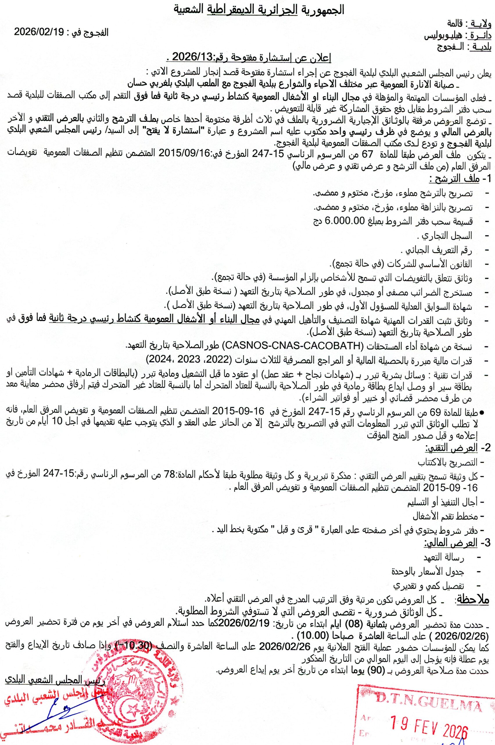 الهيئة :المجلس الشعبي البلدي لبلدية الفجوج مدة تحضير العروض : 08 أيام النوع: استشارة تحميـــــــــــــــــــــل