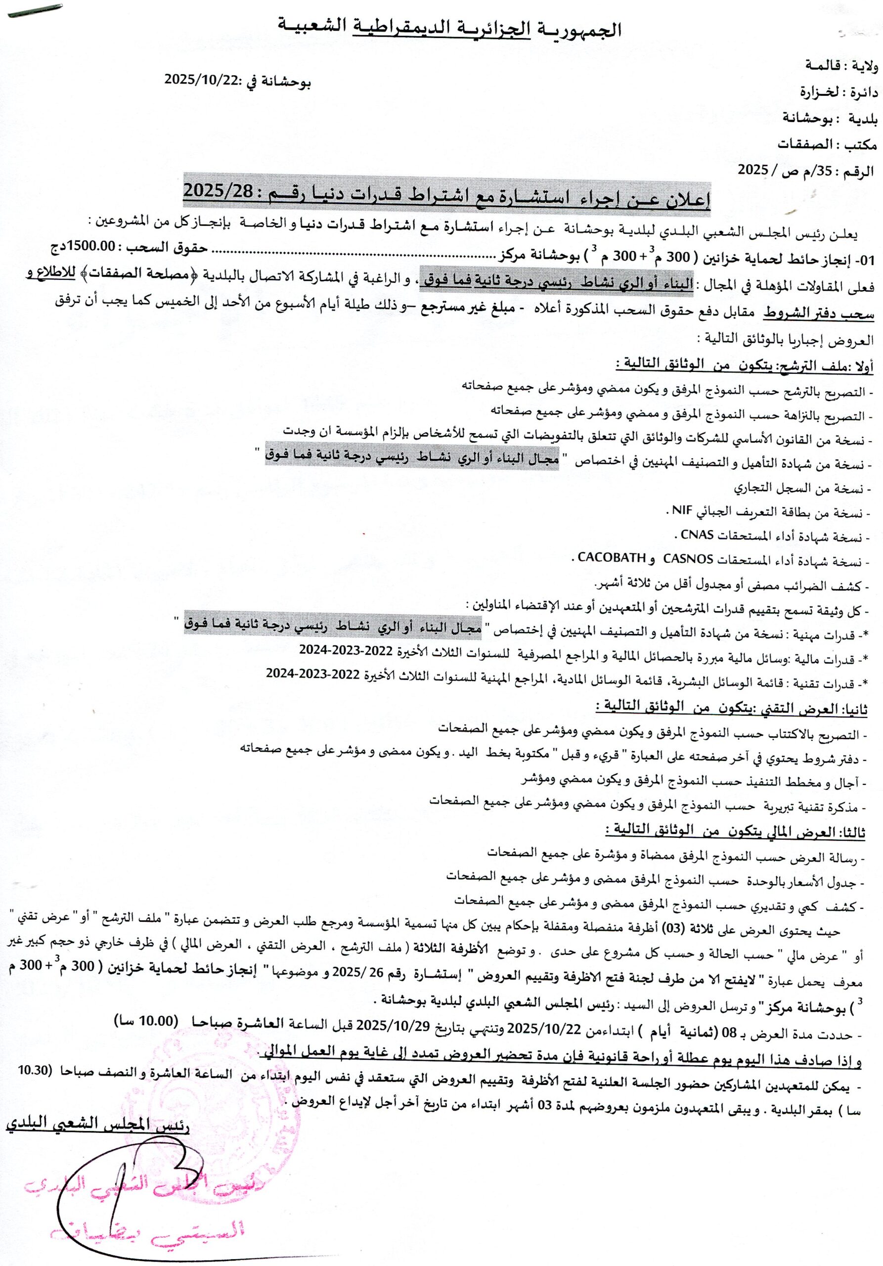 • اعلان عن استشارة مع اشتراط القدرات الدنيا رقم 28/ 2025