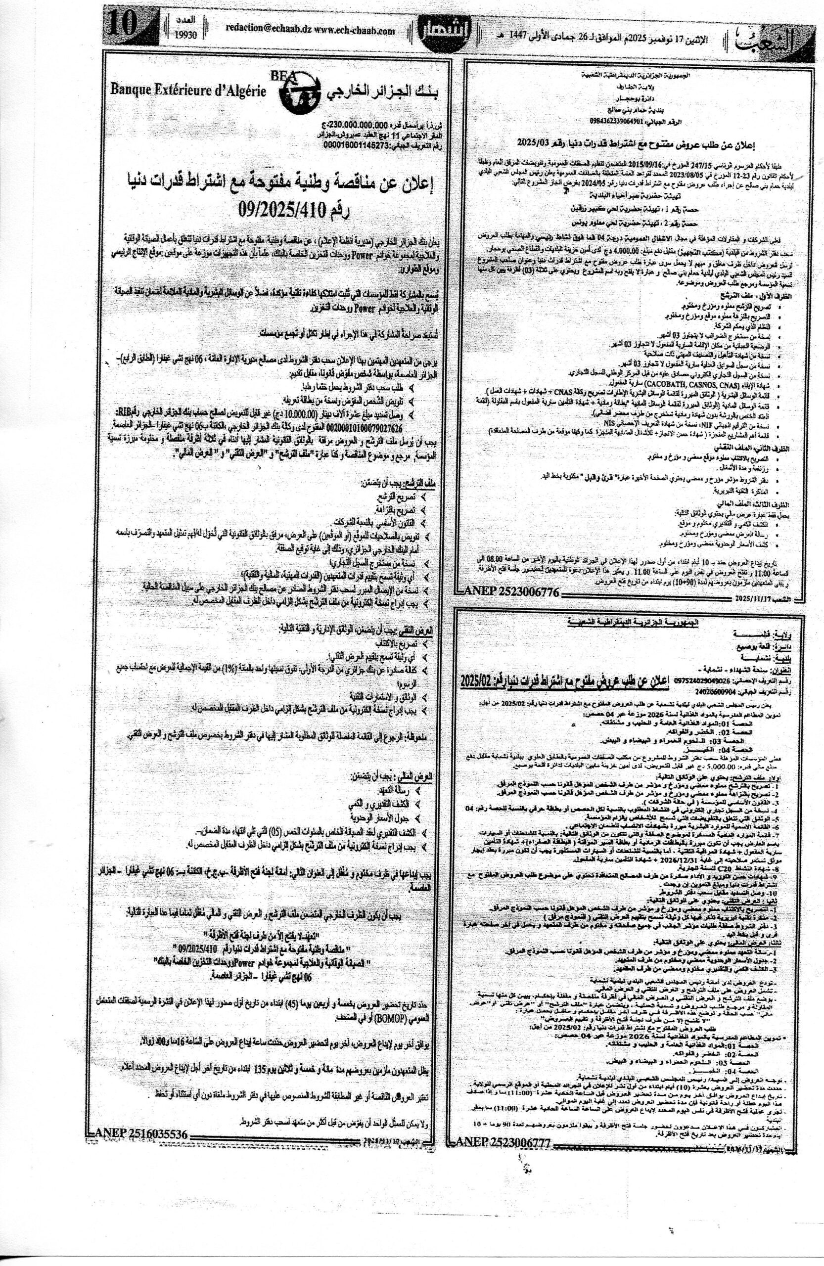 • اعلان عن طلب عروض مفتوح مع اشتراط قدرات دنيا رقم 02/ 2025